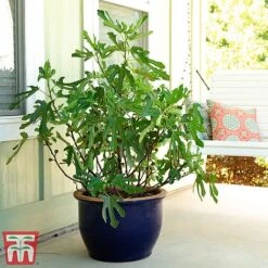 This dwarf mutation of the traditional variety ‘Violette de Bordeaux’ makes it easy to grow your own Figs in even the smallest of gardens! Fig ‘Little Miss Figgy’ has a neat compact habit, reaching just 1.8m tall. The large leaves are deeply lobed, making an attractive ornamental feature for a sheltered border or large patio pot.