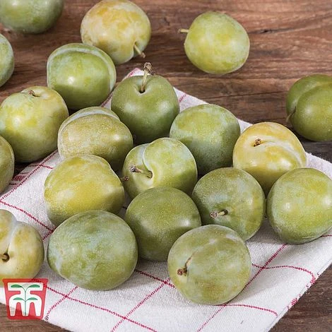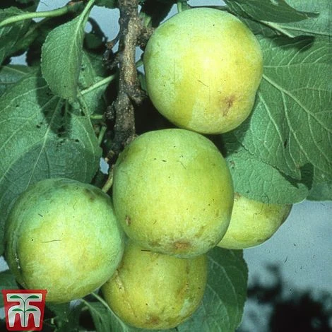A good dual purpose variety with a true Gage flavour for cooking or eating fresh. Ideal for baking in pies when picked early, or allow them to ripen during August when they will become sweet and juicy – perfect for eating straight from the tree. Gage ‘Reine Claude d´Oullins’ is a French variety producing yellow fruits with an appealing red blush that are larger than most Gages. This variety is a reliable cropper, coping well with the UK climate.