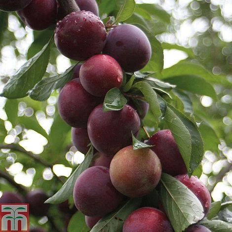 Fresh plums don’t store for long, if you want to extend your cropping into in late September, Plum ‘Marjorie’s Seedling’ is for you. Enjoy a crop of sweet tasty plums up to two weeks later than traditional favourite Plum ‘Victoria’. Don’t rush to pick the fruits, they’ll sweeten with age as they sit on the tree. One of the best plum varieties for small gardens, producing heavy crops of large round fruits that are delicious eaten straight from the tree or cooked in pies, crumbles and jams .